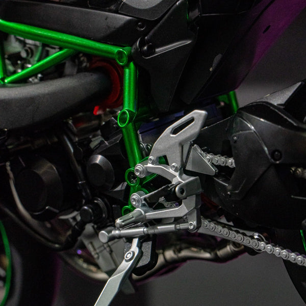 Kawasaki Ninja H2R 1:6 ไม่ใช่แค่โมเดลแบบคงที่ แต่ยังมาพร้อมฟีเจอร์ทันสมัยเพื่อประสบการณ์ไดนามิก โมเดลนี้ได้รับการออกแบบอย่างพิถีพิถันด้วยรายละเอียดที่คมชัดและสมจริง ซึ่งรวมถึง: