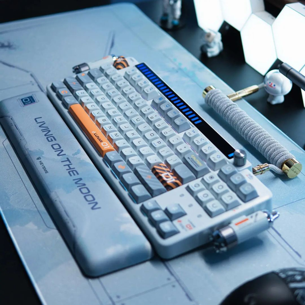 คีย์บอร์ดมีดีไซน์อันเป็นเอกลักษณ์ที่ได้รับแรงบันดาลใจจากยานอวกาศ พร้อมลูกหมุนจรวด 2 ลูกที่สามารถหมุนได้อย่างอิสระนานสูงสุด 60 วินาที มอบประสบการณ์การเดินทางในอวกาศที่สมจริงที่สุดให้กับคุณ จุดเด่นของ Lunar 01 คือแถบไฟ LED RGB ที่มีให้เลือก 5 โหมดแสง ปรับแต่งได้อย่างเต็มที่ อุปกรณ์เสริมทั้งสองชิ้นสามารถถอดออกได้ ช่วยให้พกพาใส่กระเป๋าเป้หรือกระเป๋าได้สะดวกยิ่งขึ้น