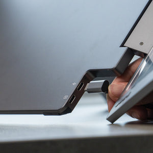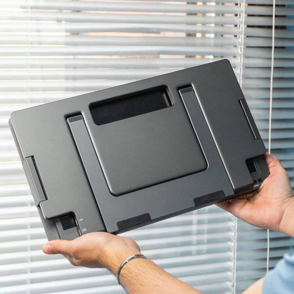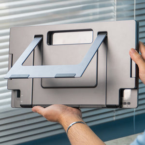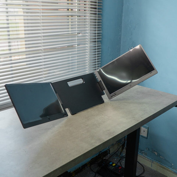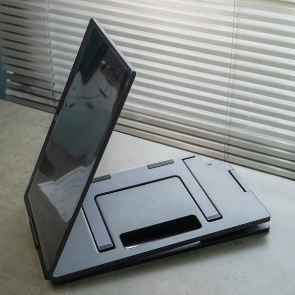 แต่ละหน้าจอรองรับการพับหลายมุมตั้งแต่ 0–210° พร้อมขาตั้งในตัวที่ปรับได้สูงสุด 90° ออกแบบมาเพื่อการนำเสนอที่ราบรื่น สามารถติดตั้งเข้ากับแล็ปท็อปของคุณได้อย่างง่ายดายโดยไม่ต้องใช้เครื่องมือเพิ่มเติม และไม่ถูกจำกัดด้วยความสูงของแล็ปท็อป