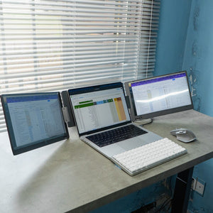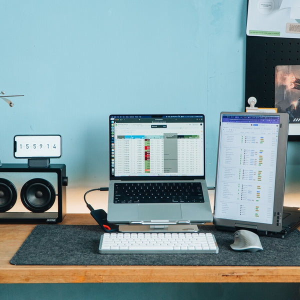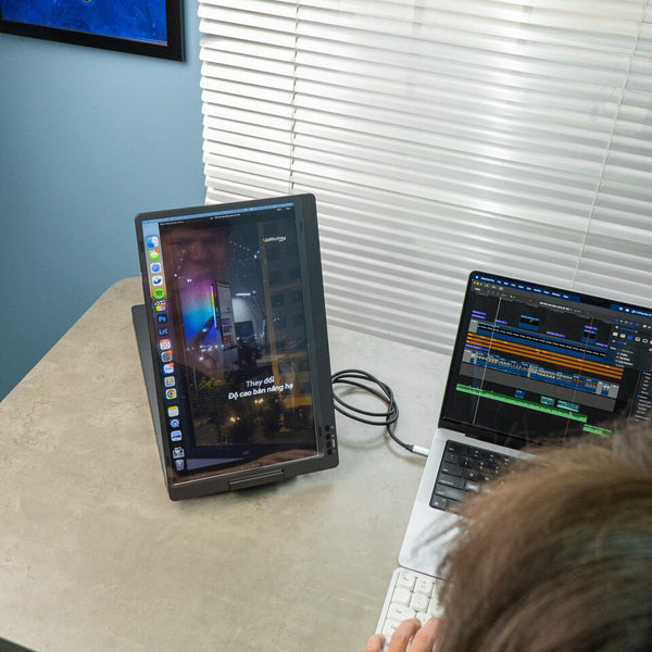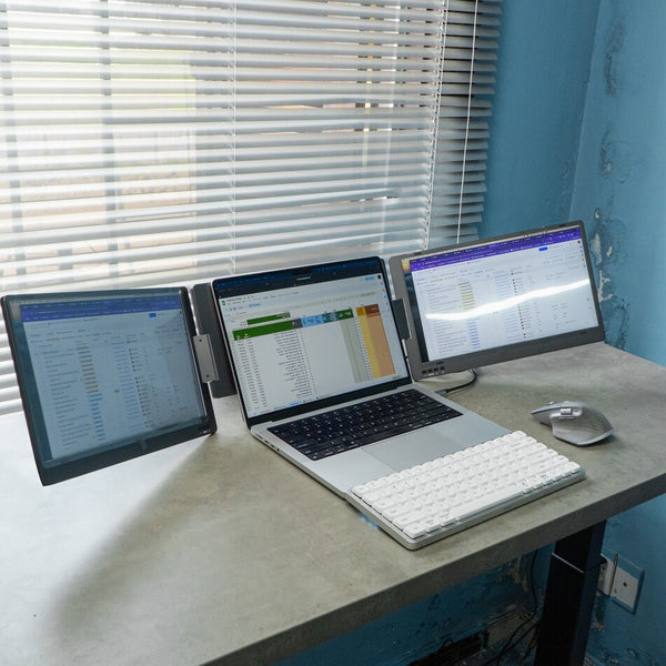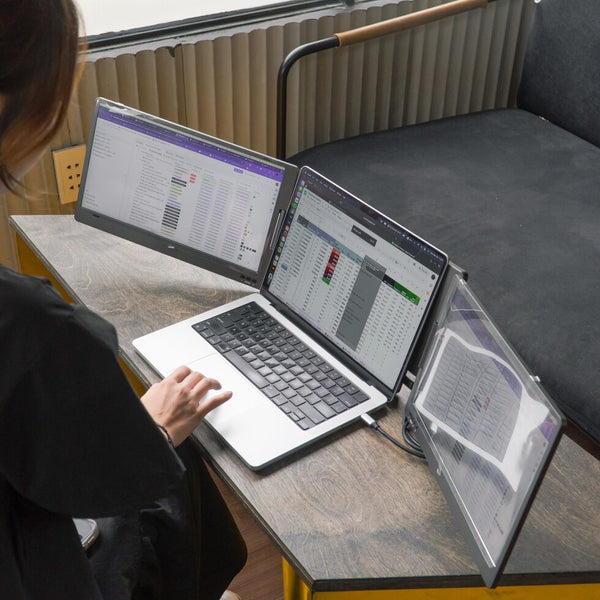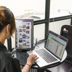 หน้าจอคู่ Tri-Screen 9Space เป็นตัวเลือกที่เหมาะสำหรับแล็ปท็อปขนาด 11-17 นิ้ว และใช้งานได้กับ Windows, macOS และ Android ดีไซน์ที่ครอบคลุมประกอบด้วยสาย USB-C to USB-C และอะแดปเตอร์ USB-A ทำให้เป็นอุปกรณ์คู่ใจสำหรับมืออาชีพ เกมเมอร์ และผู้ที่ทำงานหลายอย่างพร้อมกัน