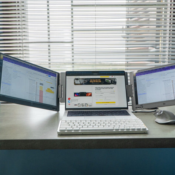 จอภาพคู่ Tri-Screen มาพร้อมซอฟต์แวร์ไดรเวอร์ในตัว (ไดรเวอร์คือซอฟต์แวร์ที่รองรับแล็ปท็อปรุ่นใหม่ๆ เช่น Mac M1, M2, M3 ช่วยให้สามารถใช้จอภาพแยกกันได้โดยไม่จำกัดอยู่เพียงการสะท้อนหน้าจอ 2 จอเป็นจอเดียว)